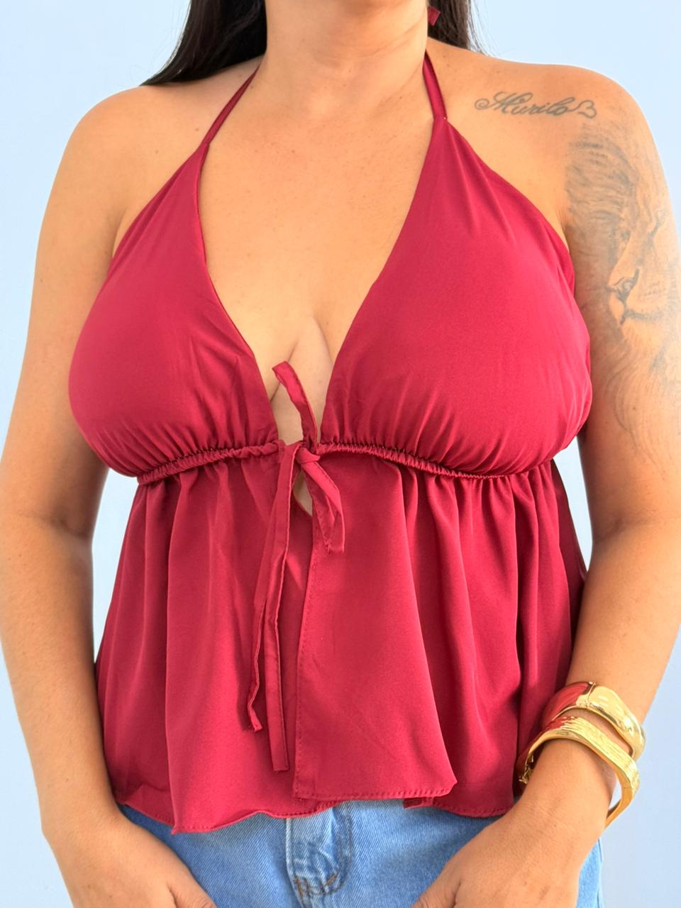 ✔️ Amarração no pescoço (estilo frente única)