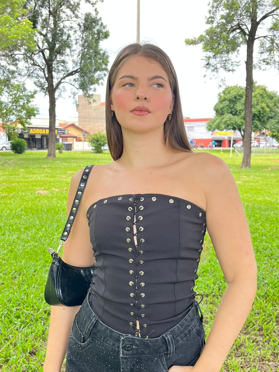 Garanta já seu Corset Preto com Ilhós e eleve seu look a outro nível. ✨