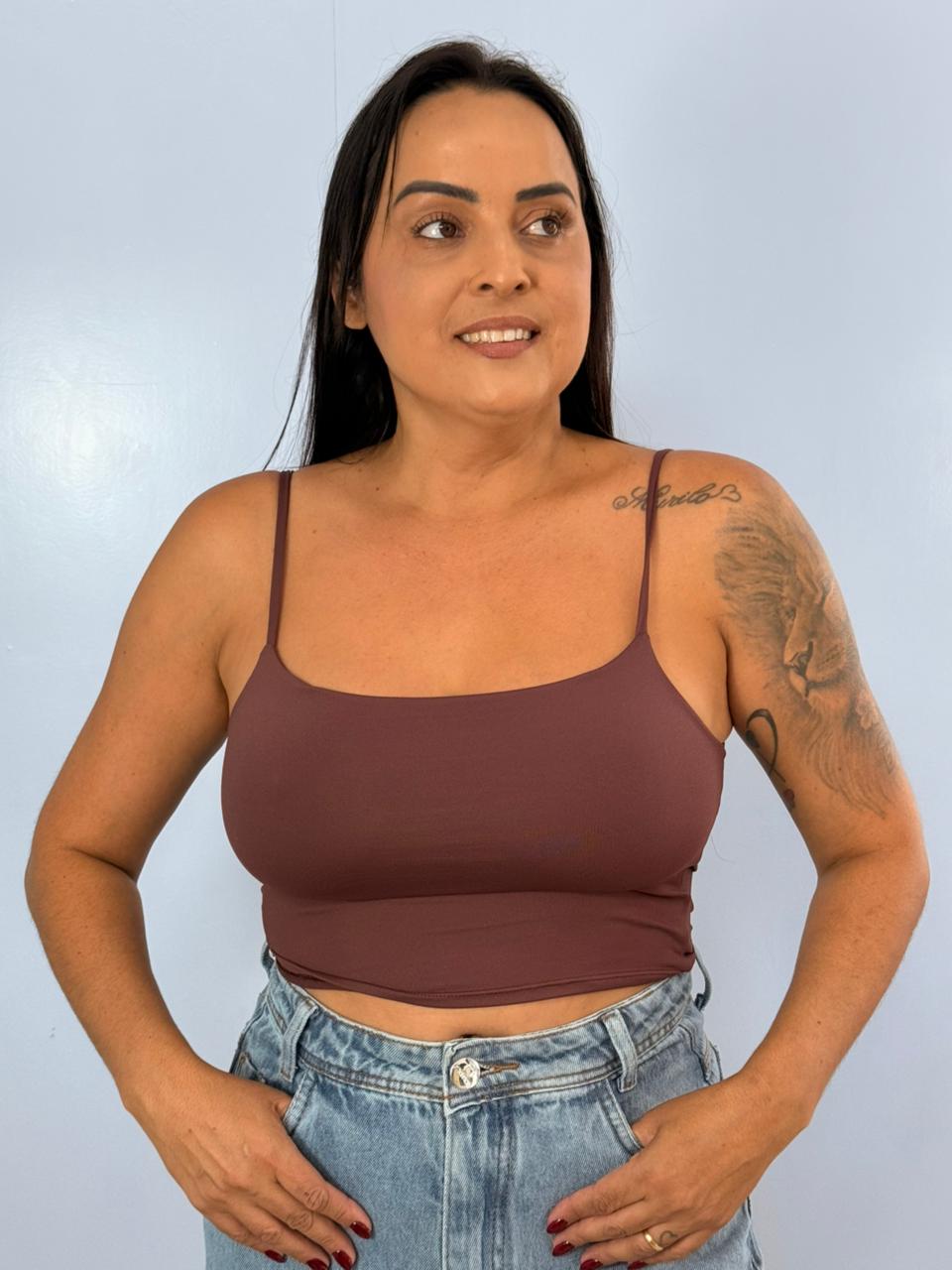 Cropped Poliamida Basic Marrom