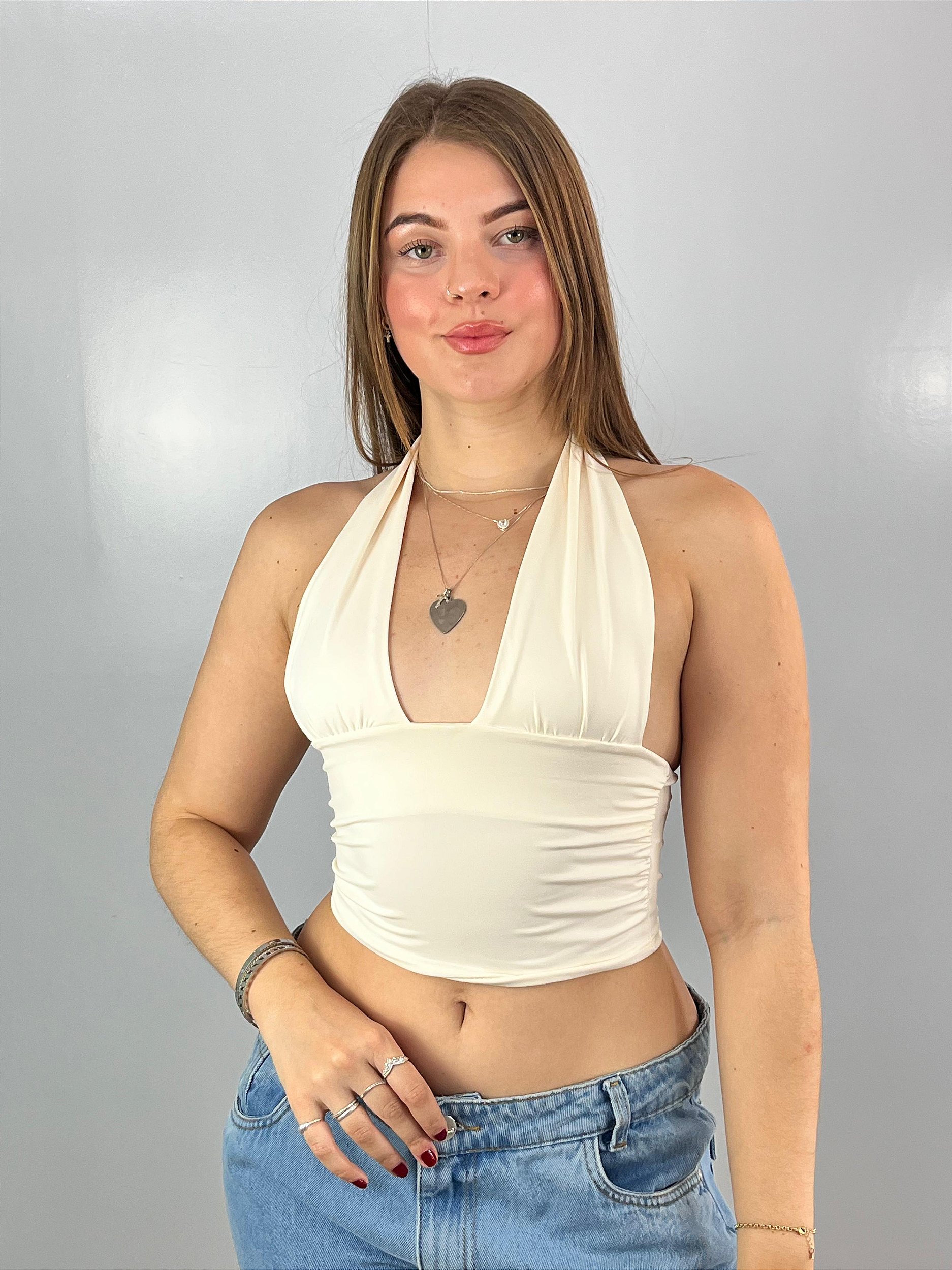O Cropped Jade é a peça-chave para quem busca estilo e praticidade no dia a dia. Com design multiformas e decote profundo, ele permite diversas formas de amarração, adaptando-se ao seu corpo e ao seu estilo com liberdade e criatividade.